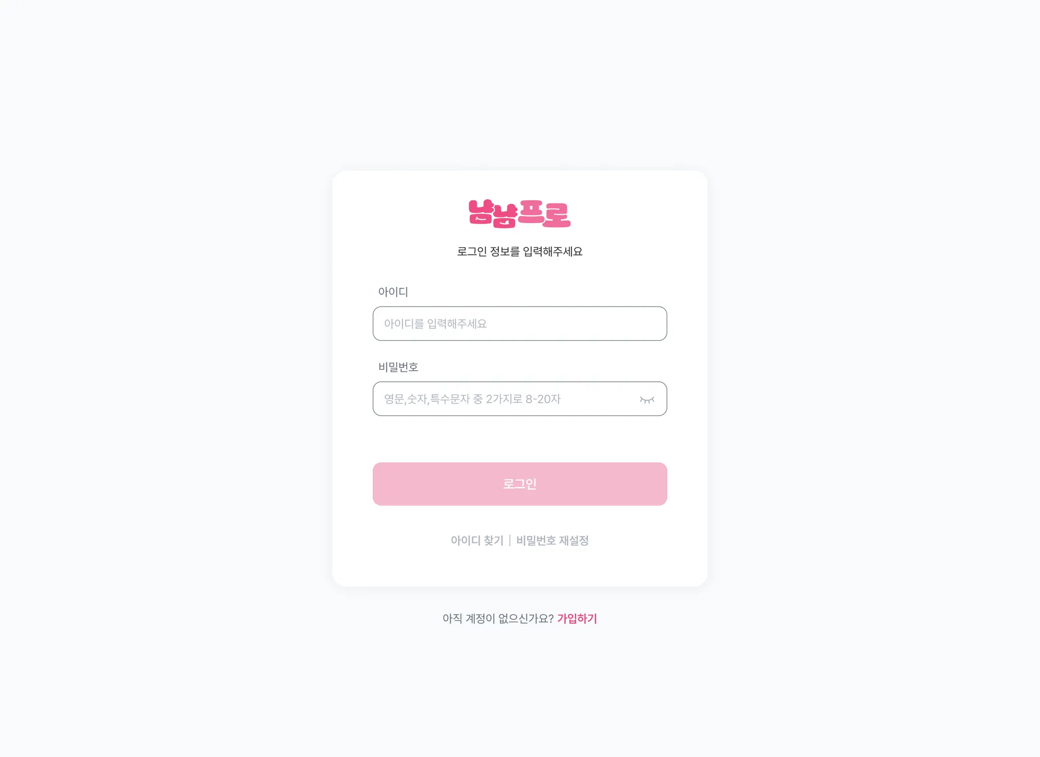 본인의 이름, 아이디, 비밀번호를 입력해주세요.