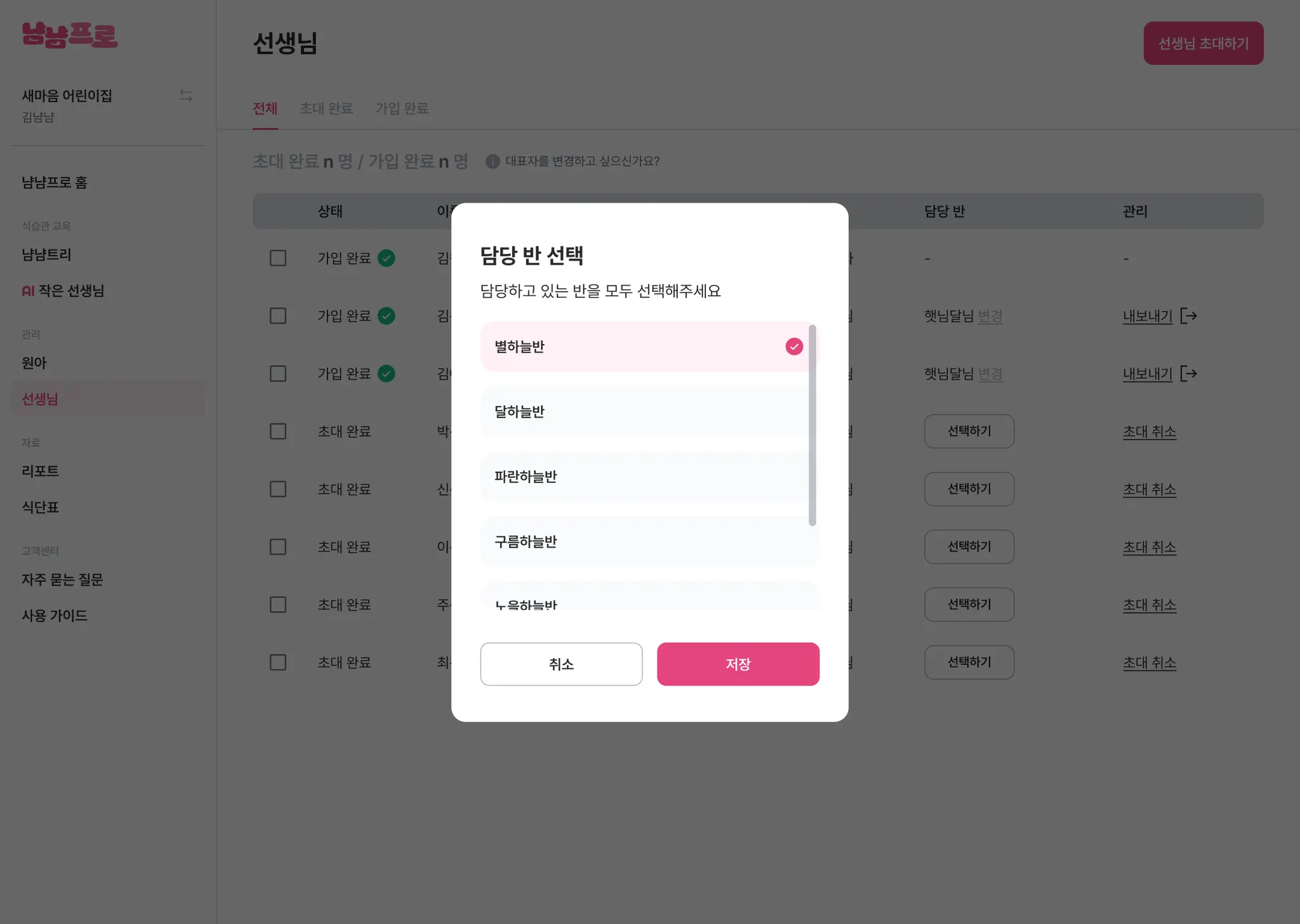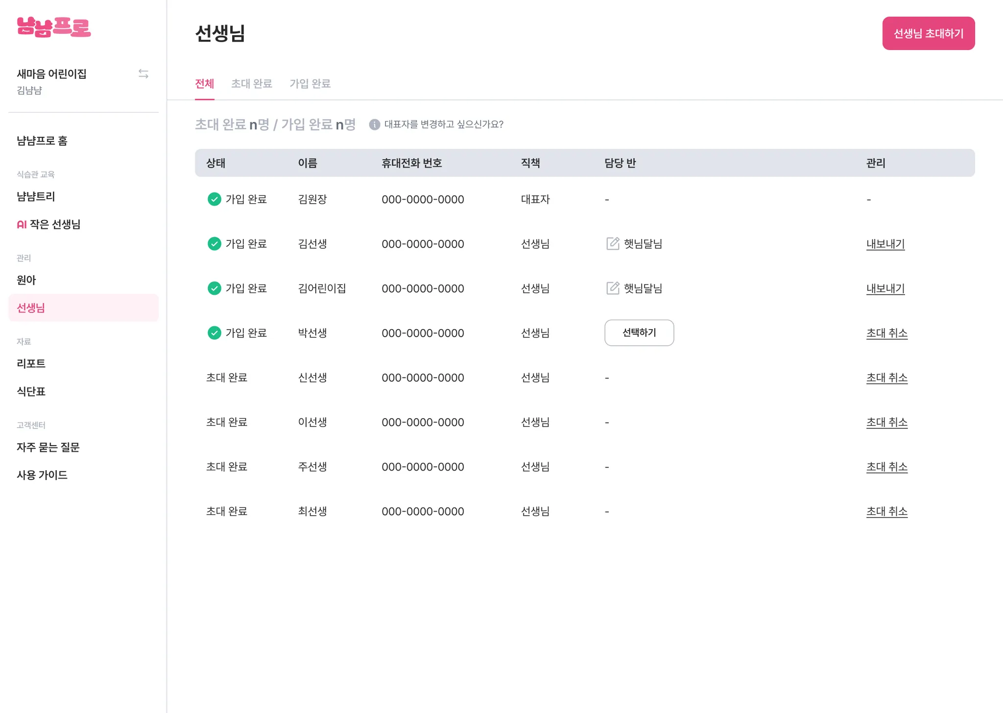 초대 완료 또는 가입 완료한 선생님을 확인할 수 있어요.
