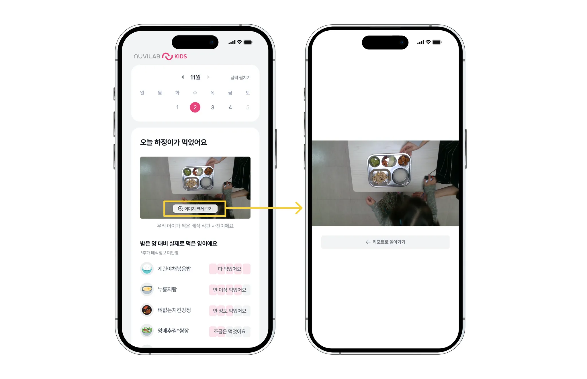 기존의 이미지 보기 창은 너무 작아 확대해서 봐도 잘 안 보이신다는 보호자분들의 의견을 반영하여 이제는 이미지를 클릭하여 확대해 볼 수 있게 되었어요!
