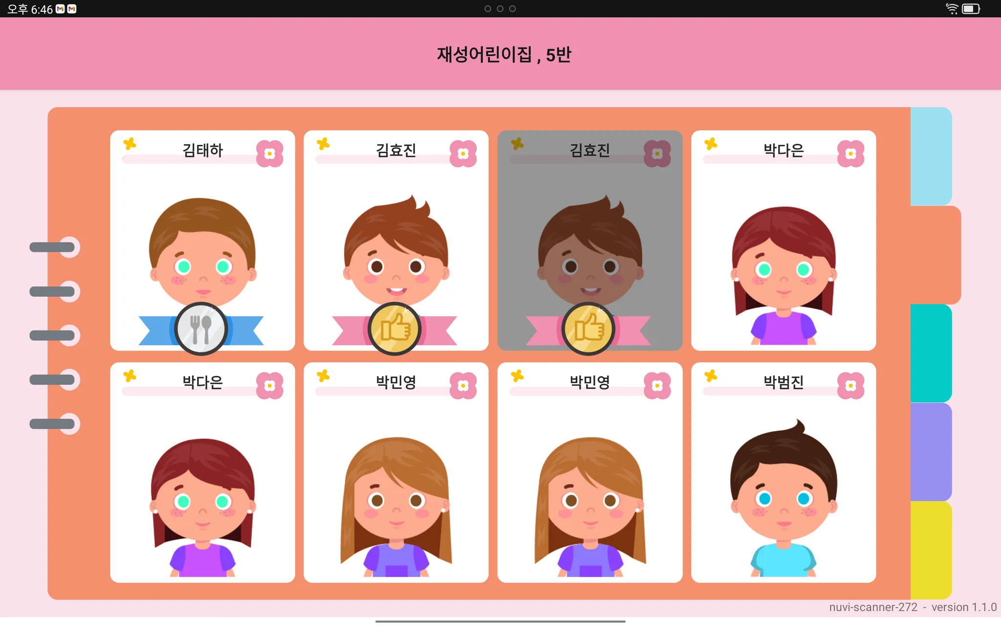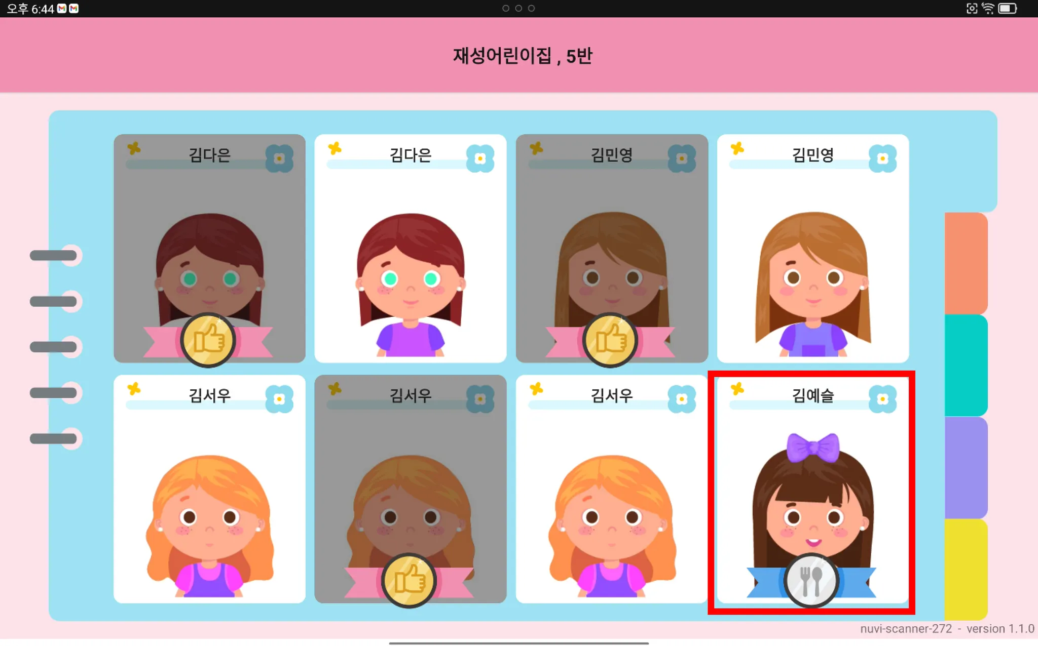 스캔을 완료한 뒤 원아 카드에서 스캔 완료 표시를 확인해요
