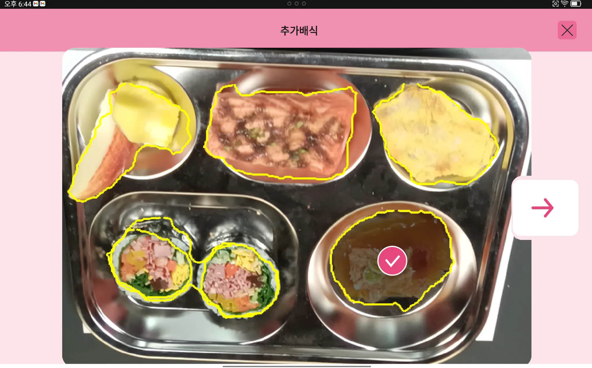 추가 배식 식판을 촬영하지 않아도 돼요!