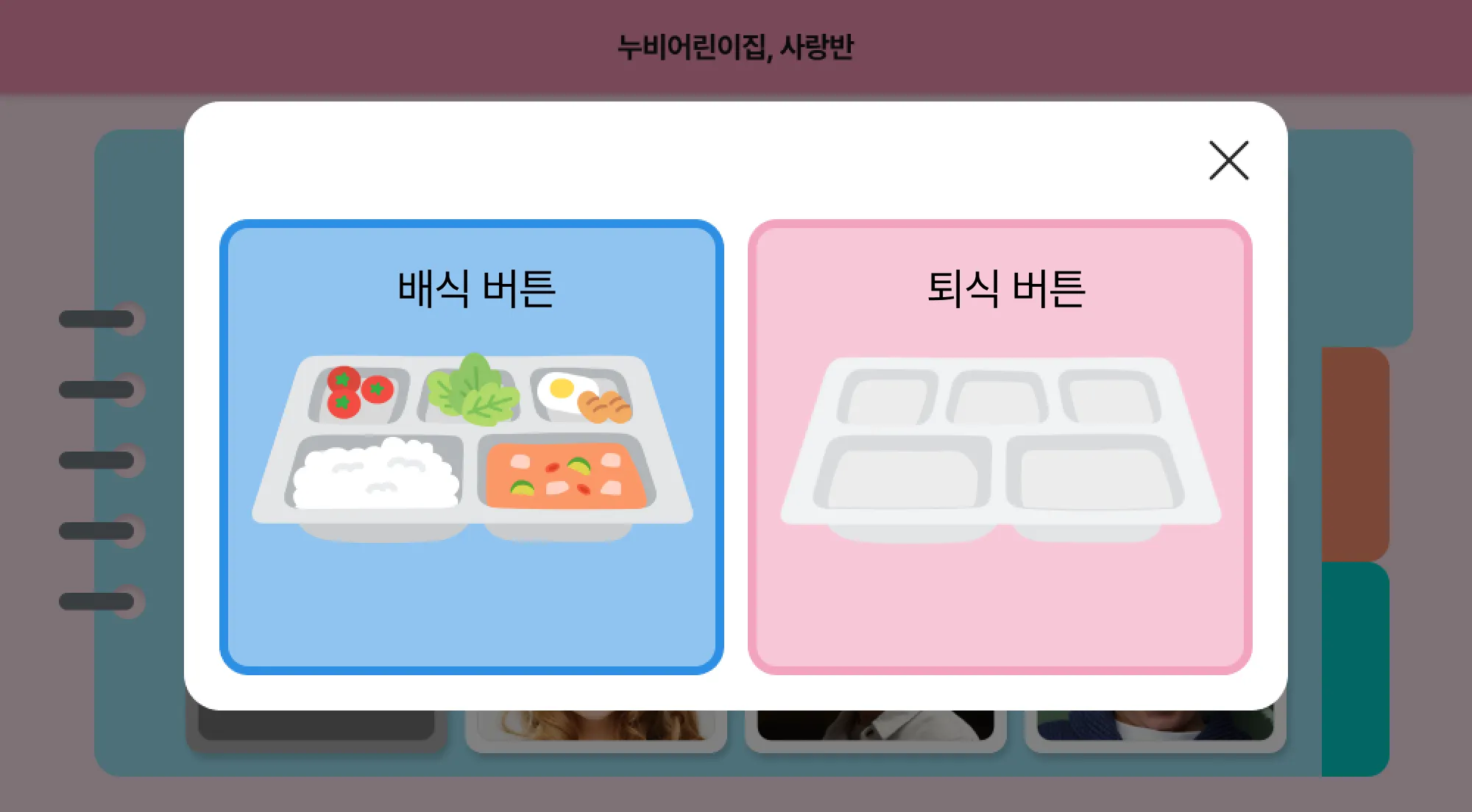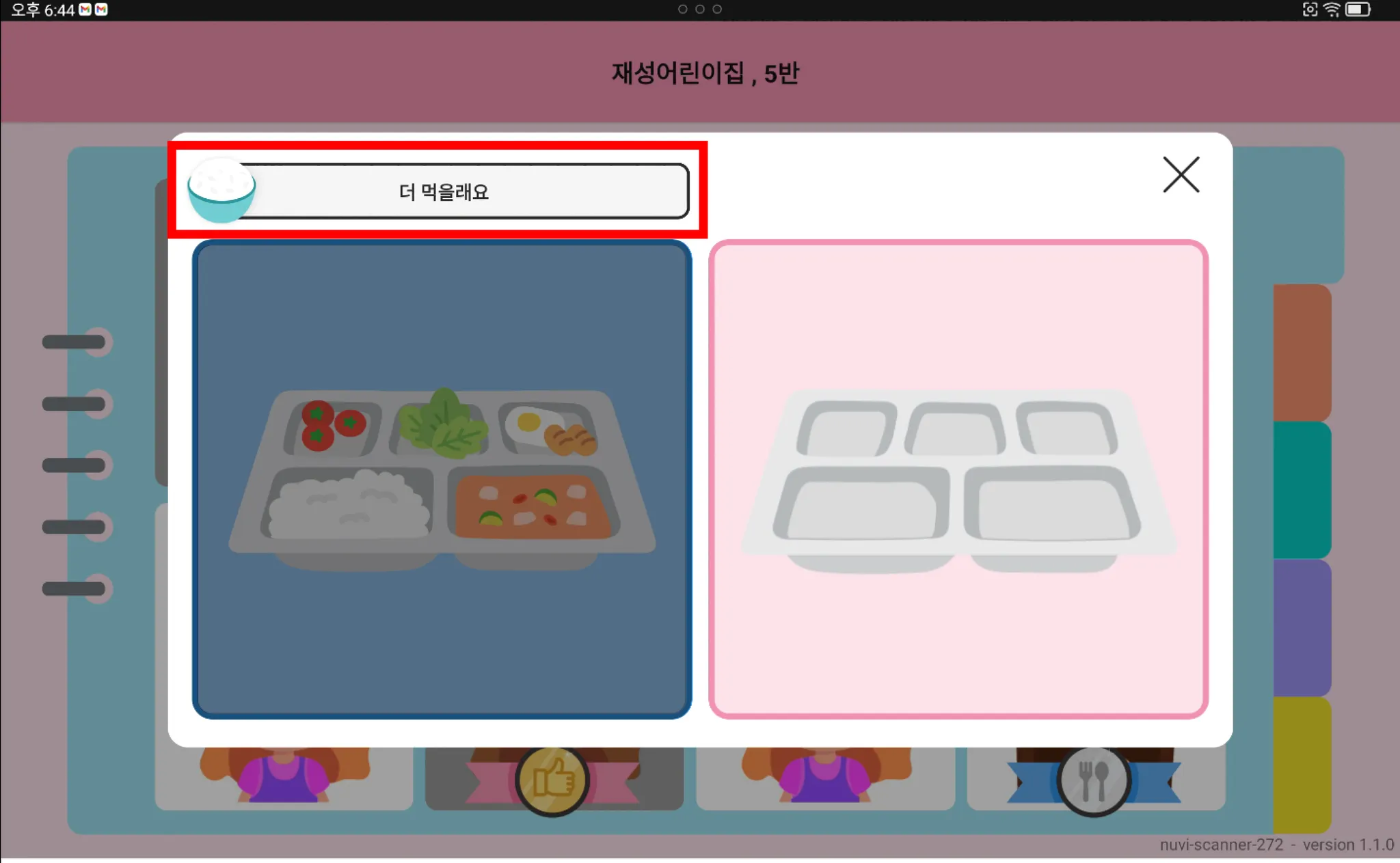 이제는 배식,퇴식 식판 촬영을 위해 화면 모드를 전환하실 필요 없이, 아이들이 직접 선택할 수 있어요!