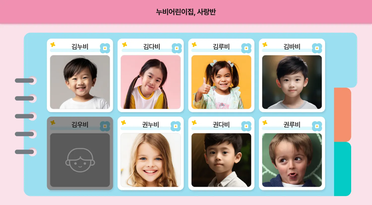 원아는 자신의 카드를 찾아 눌러요