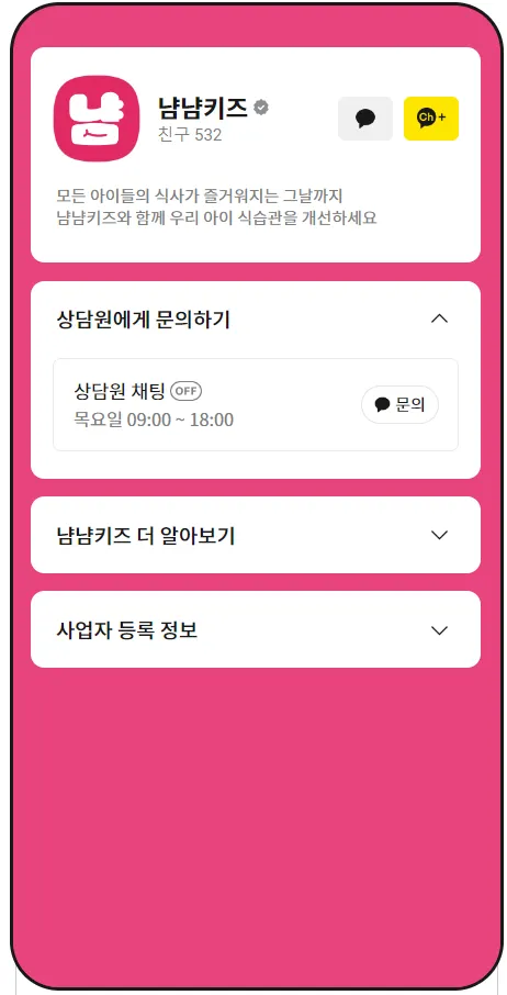 드디어 카카오톡 채널 이름이 냠냠키즈로 변경되었어요:)