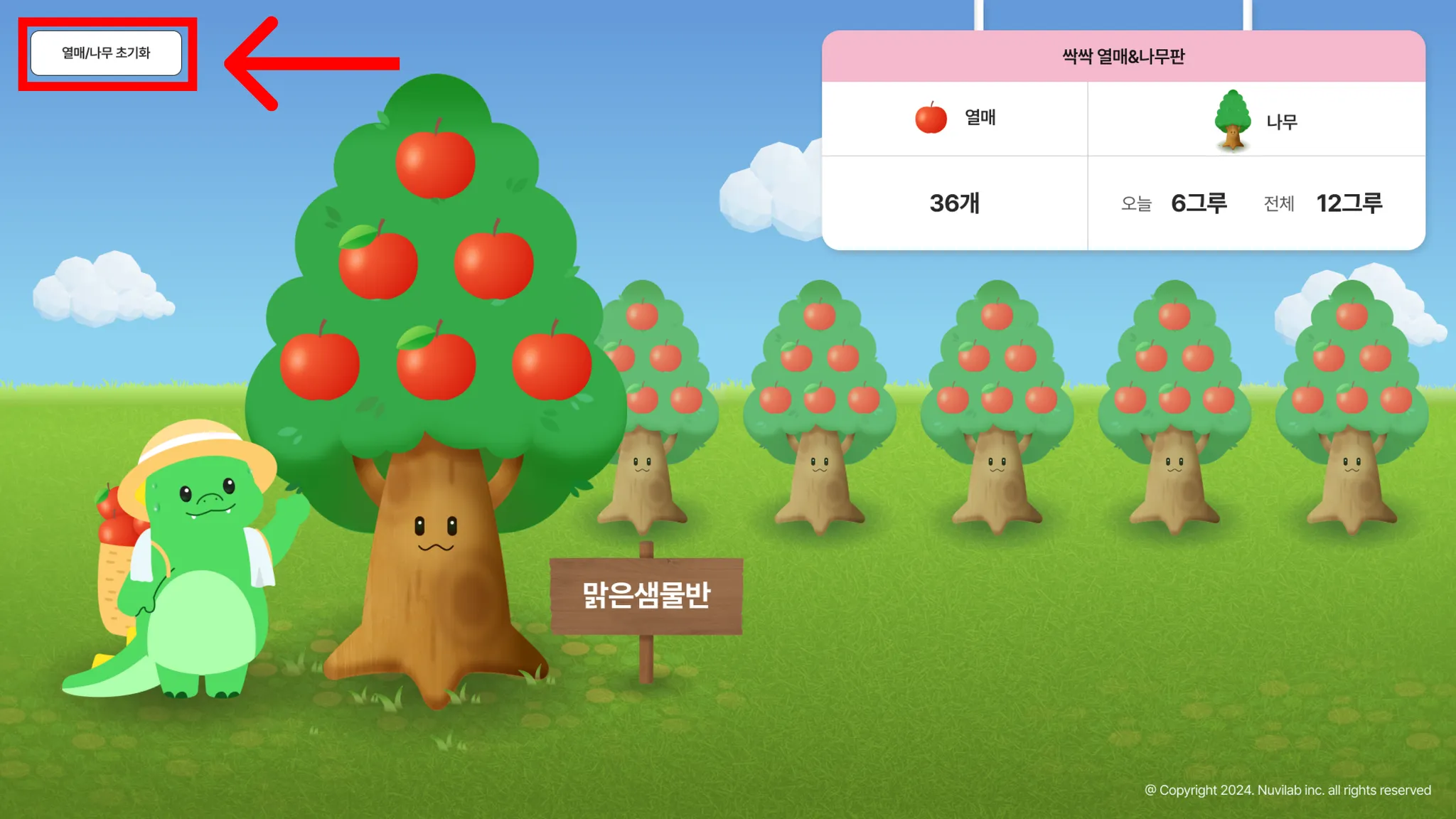 한 번 초기화하면, 처음부터 다시 열매를 모아가야 하니 선생님께서 원하시는 경우에 선택적으로 사용하시면 돼요!