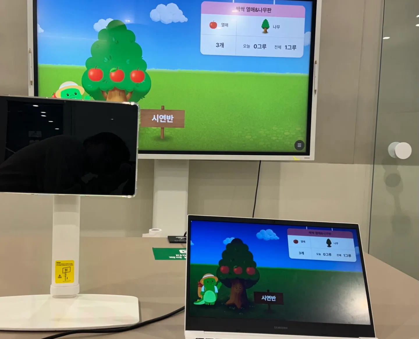 노트북을 이용하신다면, 아이들이 열매가 열리는 것을 가까이서 볼 수 있도록 냠냠플레이(스캐너) 근처에 노트북을 두시는 것을 권장드려요.