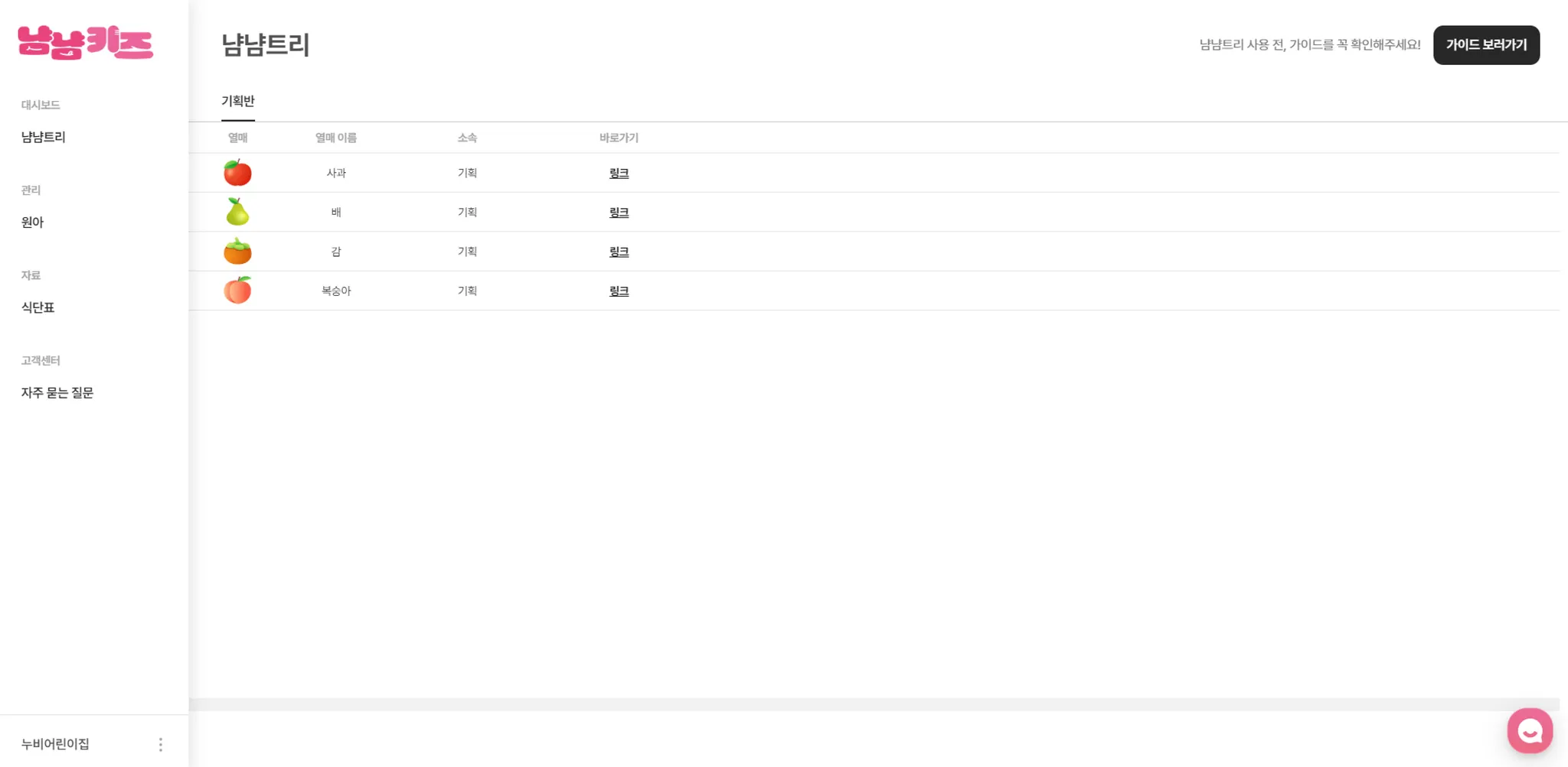 냠냠트리는 아이들이 잘 먹을 때 열매가 열려 나무를 키울 수 있는 대시보드이에요.