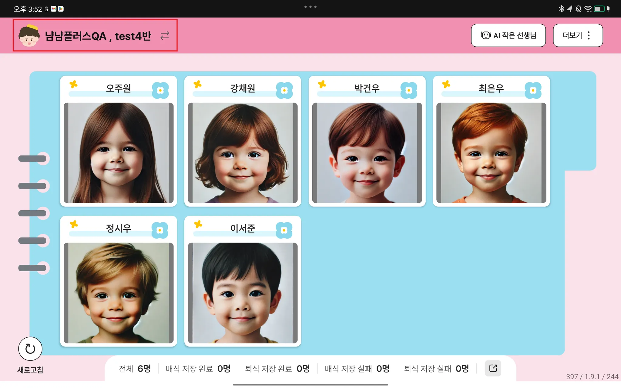 반을 변경하고 싶을 경우, 좌측 상단의 기관명, 반명 을 선택하시면, 반 변경 화면이 나와요.