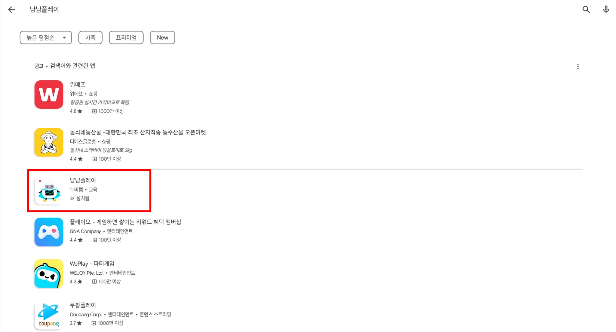 검색창에 냠냠플레이를 검색하여 앱을 설치해주세요.