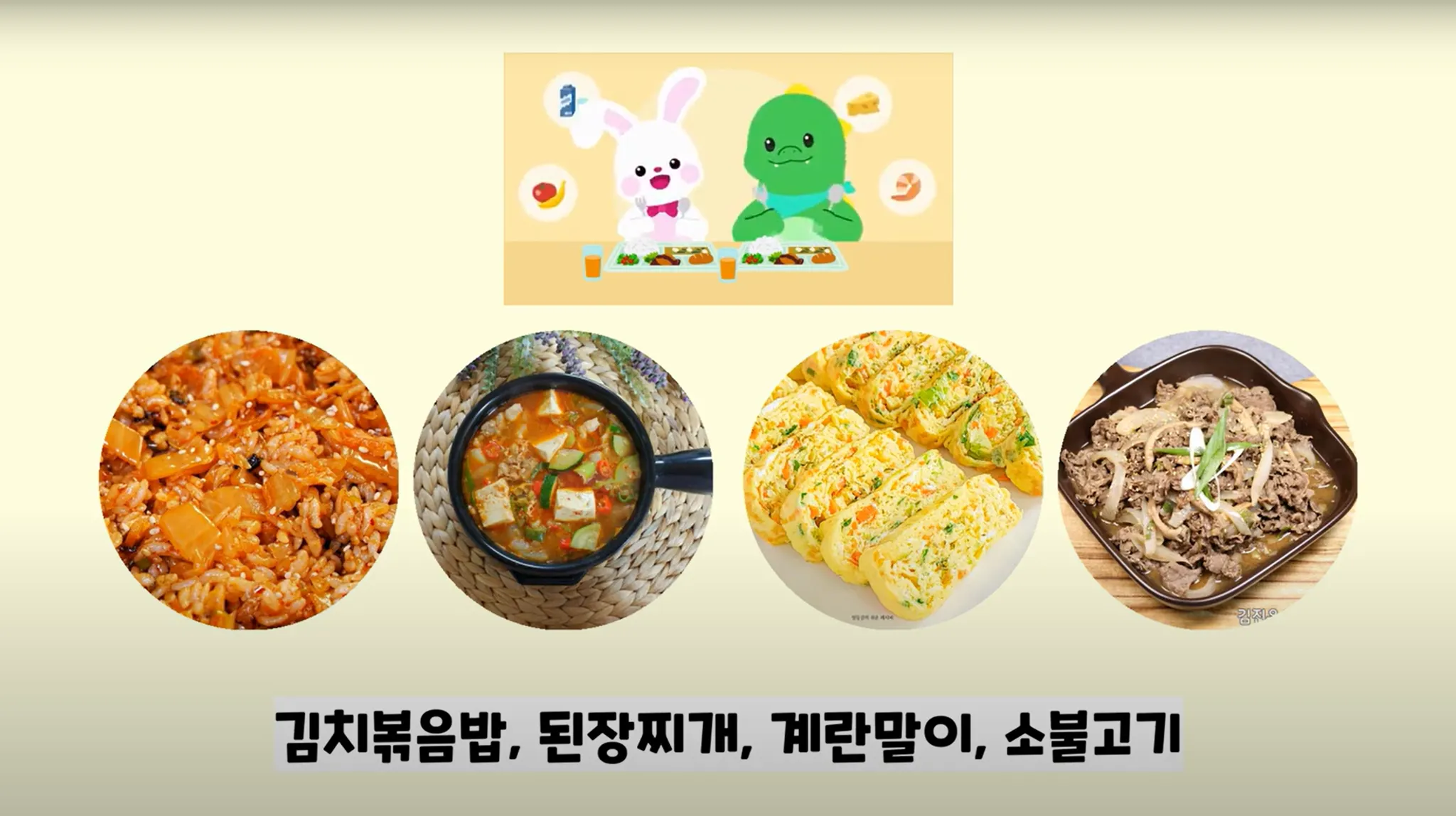 영상 속 메뉴는 유치원, 어린이집마다 제출한 식단표의 당일 메뉴로 적용돼요