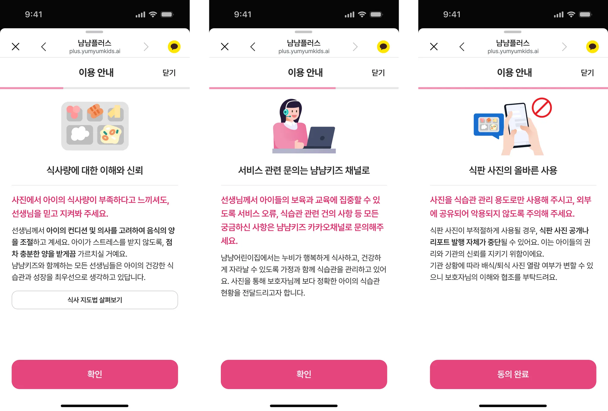 아이가 직접 찍은 사진을 보시기 전, 최초 1회 이용 안내에 대한 동의가 필요해요.